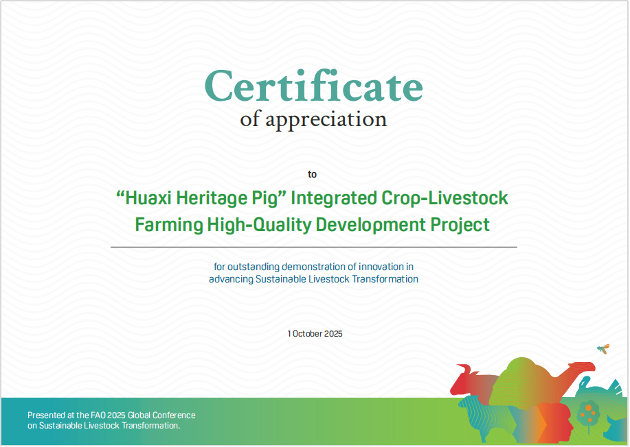 近日,世界粮食日暨联合国粮农组织(FAO)成立80周年庆祝活动举行,在FAO意大利罗马总部首次举办全球技术成就表彰仪式。国家生猪技术创新中心“华系田园猪”种养循环高质量发展项目,从全球90国1390份申请中突围,荣获“可持续畜牧业转型领域”全球技术成就表彰。