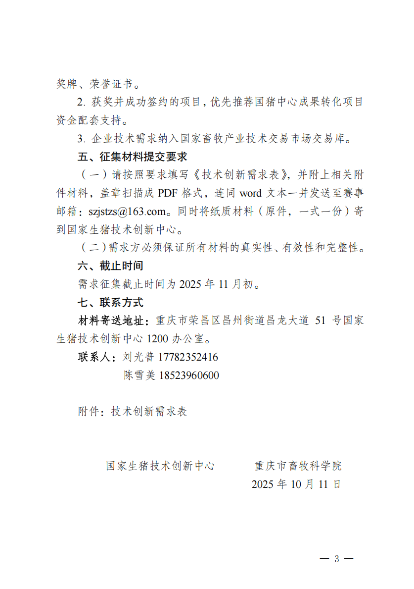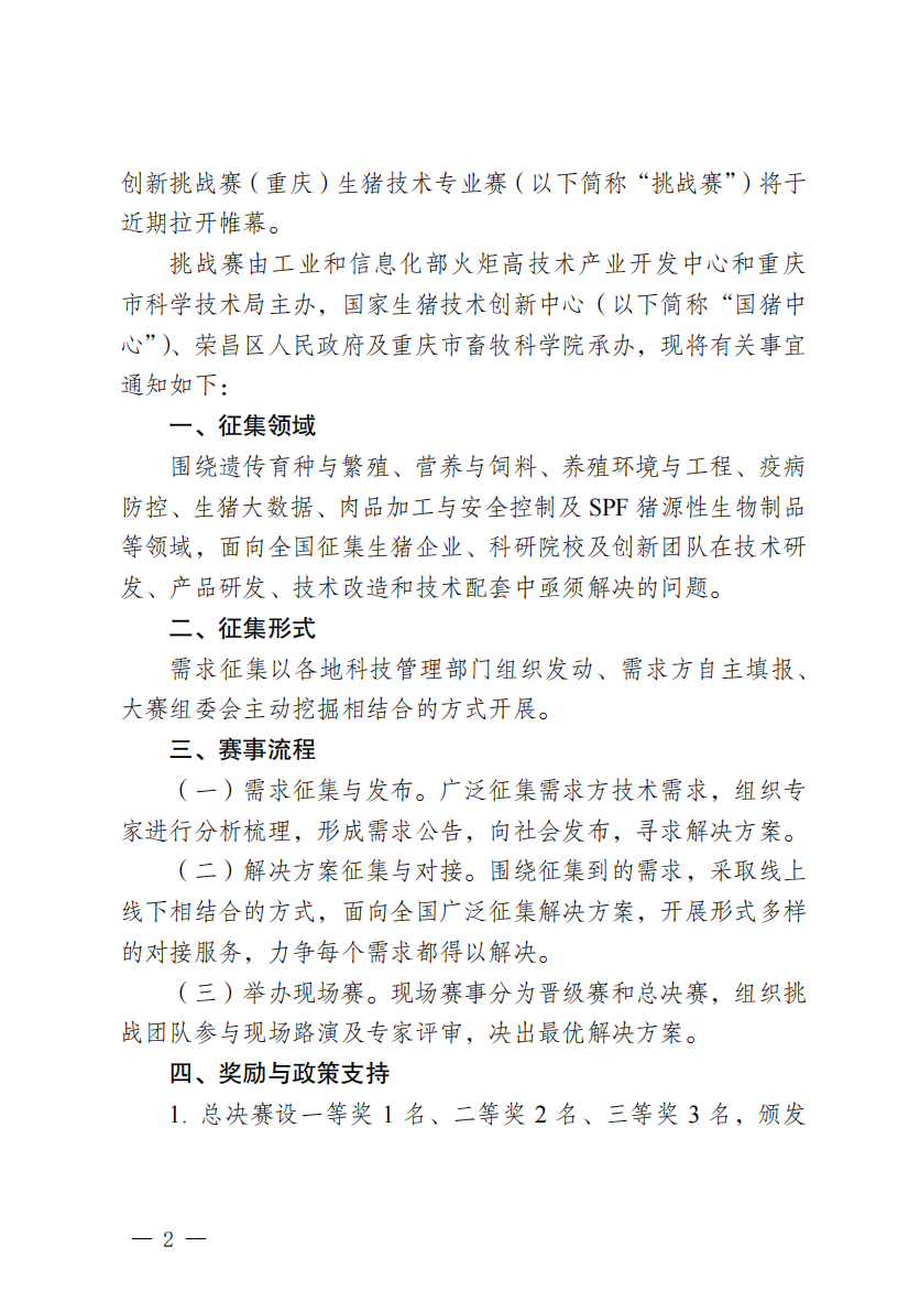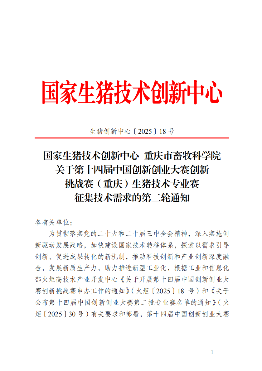 国家生猪技术创新中心 重庆市畜牧科学院 关于第十四届中国创新创业大赛创新 挑战赛(重庆)生猪技术专业赛征集技术需求的第二轮通知